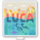 Sea monster Alberto points to the town above the sea with Luca, as the name "Luca" exists in both places with a different appearance.
