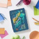 I was super excited when I got my cover in. It is attached by a magnet across the edge. I don’t think it will be very protective but it is very cute. I’m going to keep my iPad in a sleeve and use this face cover while I have it out. It folds to create a tilt for better viewing and to keep the iPad at a slight angle for typing. The colors are bright and it is fun. I’ve really enjoyed it. The personalization looks like amazing. It is the same color as the picture and is the same brightness. Well done! Very nice.