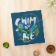 Sea monster Luca swimming with a school of fish, featuring the words "Swim With Me".