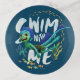Sea monster Luca swimming with a school of fish, featuring the words "Swim With Me".