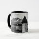 Exclusive and unique Coffee Mug with black and white photography from old town of lucerne city with the chapel bridge. Switzerlands point of interest souvenir coffee or tea mug from the old bridge of lucerne in the centre of switzerland.