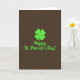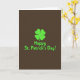 This card shows a bright four-leaf clover glowing in lime green 💚 at the center of a deep, earthy brown background, like a lucky token set out for St. Patrick’s Day. The clover reads as a smooth silhouette, and its fresh green feels like spring arriving early. Just below it, the words “Happy St. Patrick’s Day!” sit centered in a rounded sans‑serif font, matching the clover’s green for a tied-together look ☘️. The layout is evenly balanced, with the clover and greeting stacked neatly so your eye lands on them right away. A darker green shadow sits slightly behind both the clover and the text, giving them a gentle lifted effect, as if they were cut from paper. The warm brown backdrop makes the green stand out, like two friends leaning in close for a photo under soft pub lighting. The clover and the line of text both carry that same subtle shadow, offset just enough to be visible against the brown.