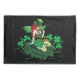Red haired Irish fairy all in green with her pot of gold and green clovers.