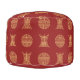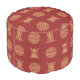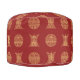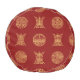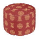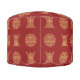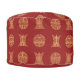 Give your living room an added Asian feel, with this bold pouf ottoman. Alternating gold Chinese longevity symbols stand out as they alternate against a burgundy red background.