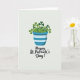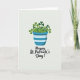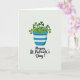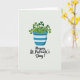 This greeting card shows a blue flowerpot with white horizontal stripes, holding a lush bunch of shamrocks in layered greens from light lime to deep forest tones 💚. The leaves are softly shaded, and a few curl into gentle heart-like shapes, as if the clovers are leaning in close like good friends sharing a quiet laugh. Everything sits on a bright white background that gives the illustration lots of breathing room and keeps the focus on the cozy cluster of clover. Centered beneath the pot, the text reads “Happy St. Patrick’s Day!” in black, flowing lettering that feels friendly and easy to read. The cool blue container and the fresh greens balance each other like a sweet pair, creating a calm, springtime look without feeling busy. A small ☘️ touch in the theme comes through in the repeated three-leaf shapes, each one slightly different in angle and shading. The pot and shamrocks are centered on the page, with the message placed just below, leaving wide white space around the design.