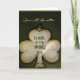 Irish shamrock with dark green background and Luck of the Irish in celtic font. Easily change names on this design.