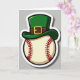 This card features a cream-white baseball with deep red stitching, topped by a bright green leprechaun hat that tilts like it’s leaning in for a friendly nudge 💚. The hat has a chocolate-brown band and a shiny golden buckle that catches the light, adding a little sparkle to the sporty scene ☘️. Everything sits centered on a soft, neutral gray background, keeping the focus on the cozy pairing of holiday charm and America’s pastime. The smooth outlines and cartoon-like shapes make the baseball and hat feel like two pals sharing the same spotlight. There’s a crisp white border around the whole design, giving it a sticker-like look that stands out from the background. A subtle drop shadow under the border adds a touch of depth, as if the image is gently lifted off the card. There’s no extra scenery or characters, just the baseball and hat posed together like a small, affectionate team. The green hat’s tall shape and the red stitches curve clearly against the gray field, with the buckle centered neatly on the band.
