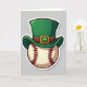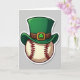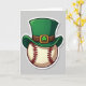 This card features a creamy white baseball with curved red stitching, topped by an emerald leprechaun hat that tilts like it’s leaning in for a friendly wink 💚. A rich brown band wraps around the hat, and a gold buckle at the front frames a small green three-leaf shamrock ☘️. The main image sits centered on a soft gray background, outlined by a thin white border that makes it feel like a sticker floating above the page. There’s no crowd or field, just that simple space that lets the sporty-and-Irish pairing feel like a shared inside joke between close friends. Any greeting text appears beneath the emblem in green, with a smaller line above it in gold to echo the buckle. The lighting stays even so the green hat and gold buckle stand out clearly against the neutral backdrop. A faint drop shadow falls down and to the right of the border, giving the design a gentle lift.