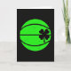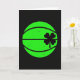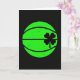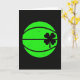 This card features a black background with a bright green circle at the center that feels like a glowing court light, marked by thin black lines that resemble basketball seams. Inside the circle sits a jet-black four-leaf clover with heart-shaped leaves, hinting at a sweet bond—like two friends sharing a lucky ritual before the big game. The green area has a light, grainy texture that gives it a slightly retro, screen-printed look. A short St. Patrick’s Day greeting appears near the top in green, keeping the message easy to spot without crowding the artwork. A smaller line of text sits near the bottom in a softer green, balancing the layout and drawing your eye back to the center. The strong contrast between the green and black makes the clover feel crisp and confident, with a little extra luck in the air 💚. Tiny speckles in the green circle and the sharp black seams frame the clover like a badge, finished with a small ☘️ detail beside the lower text.