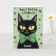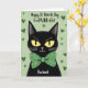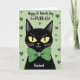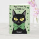 This design shows a black cat centered on a pale green background, staring straight out with sharp yellow eyes and slightly raised brows that read like a teasing grin. Soft brushy fur texture keeps the cat looking touchable, while darker green hearts scattered around it add a sweet, close-to-the-heart mood 💚. Under its chin sits a kelly green bow tie dotted with small white polka dots and faint shamrock shapes, giving the cat a dressed-up look that feels like it’s showing off for someone special ☘️. Near the top, the phrase “Happy St. Patrick’s Day to a PURR-effect” is placed in a flowing cursive style, with the punny “PURR-effect” standing out among the words. The lettering appears in dark green, easy to read against the lighter green field. Near the bottom, “Husband” is set as a simple anchor line beneath the cat, also in dark green. The scene stays minimal and focused, with the cat, the scattered hearts, and that green bow tie holding the frame together. In the background, the deeper green hearts are spaced loosely around the cat, leaving plenty of pale green open space behind the text.