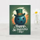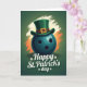 This design shows a dark teal bowling ball given a friendly, human-like presence, topped with a tall green leprechaun hat that leans in like it’s sharing a secret with you 💚. Behind it, an emerald green background is warmed by sweeping cream and orange rays that fan outward like a spotlight on a favorite friend. The hat’s deep brown band and shiny gold buckle catch the light, adding a cozy contrast against the cooler ball. The bowling ball’s soft highlights make it look rounded and touchable, as if it’s ready to roll closer for a laugh between pals. Centered near the bottom, the words “Happy St. Patrick’s Day” sit in a light cream tone with a gentle shadow so the letters stand out clearly. Small shamrocks decorate around the text in matching green, tying the design together with a little ☘️. The orange and cream strokes radiate behind the main figure, with the brightest streaks clustered just above the hat brim.