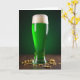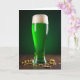 This card features a tall, gently curved pilsner glass filled with glowing emerald-green beer 💚, topped with a thick cap of soft white foam that looks like fresh clouds. The glass sits against a deep forest-green background that fades from shadow to a faint glow, giving the scene a cozy, after-hours feel. On the dark, textured wooden surface below, small shiny gold coins are scattered like a secret stash, hinting at a lucky find shared between close friends. Highlights along the rim and sides of the glass catch the light like a quiet wink, while the foam’s creamy peaks suggest a toast that lingers a little longer than planned. A short St. Patrick’s Day greeting appears near the top in white lettering, standing out clearly against the green backdrop. A smaller line of text rests near the bottom in gold, echoing the coin color and tying the scene together with a subtle ☘️ touch. The final detail is the way the coins glint along the lower edge of the image while faint reflections ripple across the glass.