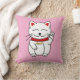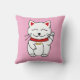 Lucky Cat for Cat Lovers Pink Throw Pillow