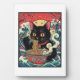 This vibrant, unique design features a lucky black cat enjoying a steaming bowl of ramen noodles. Adorned with traditional Japanese elements like cherry blossoms, crashing waves, and a bold red sun, it captures a charming Ukiyo-e aesthetic. Perfect for cat lovers and fans of Japanese art and cuisine, this design brings a touch of playful elegance and good fortune.