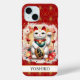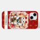 Lucky Cat With Red Flowers Monogrammed Case-Mate iPhone Case