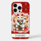 Make a statement with this iphone 16 pro phone case that features a Lucky Cat with red flowers around it on top of a gold and red background. It's modern yet traditional Japanese Maneki-neko is designed to attract good fortune, prosperity and customers into your business. The left paw raised brings customers and wealth and the white cat symbolizes general happiness. It becomes uniquely yours with your name in a CAP font in black. Invite luck and prosperity into your life!