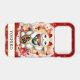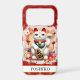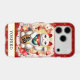 Make a statement with this iphone 17 pro phone case that features a Lucky Cat with red flowers around it on top of a gold and red background. It's modern yet traditional Japanese Maneki-neko is designed to attract good fortune, prosperity and customers into your business. The left paw raised brings customers and wealth and the white cat symbolizes general happiness. It becomes uniquely yours with your name in a CAP font in black. Invite luck and prosperity into your life!