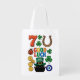 Lucky charms grocery bag is a unique design! Featuring a collection of classic luck charms like the lucky 7, ladybugs, and clovers, contrasted with a cheeky black cat telling you to "keep trying." Perfect for anyone who loves a mix of superstition and sarcasm .hand drawn with digital illustration.
