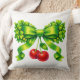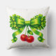 Lucky Clover Bow with Cherries Green Design Throw Pillow