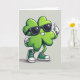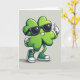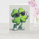 This design shows an upbeat four-leaf clover character ☘️ striding across a muted gray background, outlined in dark lines that give it a sticker-like look. The clover’s leaves shift through rich green tones with gentle shading, and a wide smile sits beneath dark rectangular sunglasses. White-gloved hands add friendly charm, with one finger pointing left as if guiding a pal along, while the other hand flashes a thumbs-up like a supportive friend 💚. Long, stem-like arms and legs keep the figure tall and lively, ending in white sneakers with green accents caught mid-step. There’s no scenery beyond the simple backdrop, so all attention stays on the character’s confident walk and welcoming gestures. Any text is placed off to the left where the pointing hand directs the eye, set in green to match the clover. The lighting stays even and bright, and the clover’s glossy green leaves and crisp white gloves stand out sharply against the soft gray field.