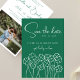 The front of this chic card features the lovely emerald green color and ´´Save the date´´ text in modern handwritten calligraphy with a lovely bunch of wild four-leaf clovers, in white. The back includes the simple info, the couple´s names, a date, and your favorite engagement photo. This card is easily customized through the ´´Personalize´´ button. Feel free to message me with any questions and custom orders, I will be happy to help! Just please note that I can't modify or interfere with an existing order. Browse my Emerald Green Wedding Collection for more invitations and other matching products like invitations, rubber stamps, RSVP cards, and more!