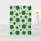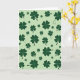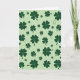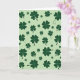 This design shows a pale mint green background filled with four-leaf clovers in deep forest green, scattered like a shared secret across an open field. Some clovers are tiny and tucked between larger ones, creating a gentle rhythm that feels like two friends strolling side by side and spotting lucky finds together 💚. Each clover has four heart-shaped leaves that meet at a lighter green center, giving them a tender, romantic look without adding any characters. Soft halo-like gradients glow behind a few of the bigger clovers, making them stand out as if a warm light is falling on them. The stems vary—some short and steady, others longer with loose curls—so the layout feels naturally tossed by a quiet breeze. Near the top, the greeting appears in a medium green, centered and easy to spot, with a smaller line of text in a darker green placed beneath it. Share St. Patrick’s Day sentiments with someone you care about ☘️.
