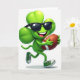 This card shows an anthropomorphic four-leaf clover in bright green, caught mid-stride on a simple white background, bringing a friendly, upbeat St. Patrick’s Day feel 💚. The clover wears dark sunglasses and flashes a wide grin, with white teeth and a pink tongue that make it look like it’s sharing a joke with the person watching. In its small rounded hands, it holds a brown American football with white laces, adding a sporty touch beside its glossy, smooth surface. Green-and-white sneakers on its feet suggest motion, like it’s dashing over to celebrate with a close friend ☘️. The lighting looks like studio light, creating gentle highlights across the clover’s shiny shape. Any greeting text would sit neatly above the character in green, easy to spot without crowding the scene. A soft gray shadow beneath the shoes anchors the figure on the white space, and the football’s stitched laces stand out against the polished green leaves.