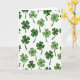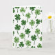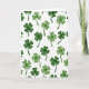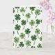 Designed with a scattered pattern of shamrocks and four-leaf clovers, this St. Patrick’s Day card sits on a bright white background that makes the greens stand out ☘️. The leaves drift in different directions, like they’re gently tossed across the page, giving the scene an easy, relaxed rhythm. Shades range from light lime to deep emerald, and the soft shading makes each clover look slightly raised, as if you could brush your fingers over it 💚. The mix of three-leaf and four-leaf shapes feels like a quiet exchange between friends—familiar comfort beside a rare little surprise. There’s no character illustration, but the clovers themselves create a friendly, close-together crowd, with some pairs landing near each other like they’re sharing a private moment. Any greeting text would sit clearly in open white space, with a medium-to-dark green color that matches the deeper leaves without blending into them. The pattern keeps repeating evenly across the front, with small leaf clusters and tiny stems visible in the lighter green accents for extra detail.
