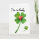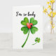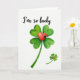 Designed with a soft watercolor look, this St. Patrick’s Day card centers on a large four-leaf clover in the upper middle, shaded in gentle layers of fresh green 💚. Where the leaves meet, a small red heart sits like a quiet promise, and a glossy black ladybug rests on top as if it’s guarding that little spot of affection ☘️. Above the clover, the words “I’m so lucky” stretch across the white background in a flowing style, set in dark ink for easy contrast. The open white space around the main image gives the clover and heart room to breathe, like two friends leaning in close without needing a crowd. The red heart against the green leaves adds a romantic spark, while the ladybug’s tiny presence feels like a shared secret between the giver and receiver. Down in the lower right corner, a smaller matching four-leaf clover appears with its own tiny red heart, echoing the main design. The brushy edges and soft color fades keep everything light, with the little clover tucked neatly near the bottom-right margin.