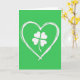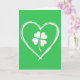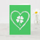 This card features a rich emerald green background that feels fresh and spring-ready, like a shared walk just after the rain. In the center sits a crisp white four-leaf clover with heart-shaped leaves arranged in neat symmetry, giving it a gentle, affectionate look 💚. A soft shadow beneath the clover adds a slight lift, making it stand out from the green field. Wrapping around it is a white heart outline made of chalk-like brushstrokes, as if someone sketched it quickly for a close friend or sweetheart ☘️. The heart’s imperfect, textured line contrasts with the clover’s smooth edges, like a tender embrace around something treasured. There’s no busy scenery—just strong shapes and color—so your eyes stay on the clover held inside the heart. Any greeting text would sit best near the top or bottom in small white lettering, leaving the center artwork unobstructed. The overall layout is minimalist: a white clover centered inside a rough white heart on a solid green background.