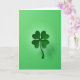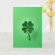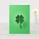This greeting card shows a four-leaf clover centered on a smooth field of bright lime green, with the clover itself in a deeper green that feels close and inviting 💚. A thin white outline traces the clover’s shape, separating it from the background like a neat cutout and giving it a gentle, almost touchable depth. Each leaf has soft shading and slight curves, like it’s been carefully pressed and is catching the light in a quiet moment. A mild highlight sits toward the top of the leaves, while a faint shadow slips diagonally down to the lower right, adding a calm sense of space. Near the top, the greeting text sits small and centered in white, leaving plenty of room for the clover to take the spotlight ☘️. The open green background keeps everything focused, like two friends sharing a knowing glance without needing extra decoration. A subtle gradient in the green field and the clover’s diagonal shadow are the main details you notice as your eye settles on the center.