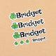 Cute name stickers featuring a lucky clover illustration. One sheet contains three stickers with the name and clover placed together, one sticker with just the name and three isolated shamrock stickers. Personalize with your name to create name labels that you can use to mark your possessions.