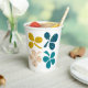 Lucky Clover Shamrock St Patrick`s day Party Paper Cup. Hand drawn four leaf lucky clovers in different colors.