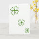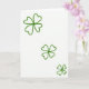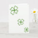 This card shows three simple four-leaf clovers outlined in rich green on a wide white background, like quiet little notes passed between friends 💚. They sit on a gentle diagonal from the upper left to the lower right, with the biggest clover leading and the other two getting smaller as they go. Each clover is drawn with one continuous line that loops into four heart-shaped leaves, giving the shapes a soft, affectionate look ☘️. The line has tiny changes in thickness, as if a marker pressed a little harder in places, which makes the drawing feel human and close. There’s no scenery beyond the open white space, so the green shapes feel like they’re floating in calm air. There is no text on the front, leaving plenty of room for your own message inside and a quiet pause between the clovers. The largest clover sits near the top-left corner, and the smallest rests near the bottom-right edge, all in the same green outline.
