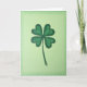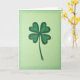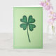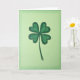 The front design shows a hand-drawn four-leaf clover centered on a soft lime-green background that fades into deeper emerald around the edges, like a gentle vignette. Each heart-shaped leaf is shaded in layered greens with visible pencil-like strokes, giving it a close, sketchbook feel that reads as quietly affectionate. A dark, slightly uneven outline traces the leaves and stem, adding warmth and a touch of rustic character. Near the top, a short St. Patrick’s Day greeting sits in small dark-green lettering, balanced so it doesn’t crowd the clover. The open space around the plant feels like a calm pause you might share with a friend, with the clover standing in as a sweet little promise of luck 💚. A tiny ☘️ accent appears near the lower corner, echoing the main shape without stealing attention. The edges remain softly shaded, with the richest green gathered along the perimeter while the center stays light and airy. Share St. Patrick’s Day sentiments with someone special.