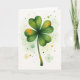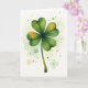This design shows a large four-leaf clover centered on a bright white background, painted in soft watercolor greens that shift from deep emerald to light lime 💚. Two of the leaf tips and the slim stem are brushed with warm golden-orange, like a gentle touch shared between close friends. A faint halo of pale green wash surrounds the clover, giving the scene a calm, airy setting without drawing attention away from the main shape. Around it, small round dots in greens, yellows, and a few darker tones scatter like dew catching light, adding movement while keeping the mood quiet ☘️. Near the lower area, two smaller four-leaf clovers appear like light echoes—one in a muted gold and another in a translucent mint—resting close enough to suggest companionship. The main greeting sits below the artwork in a medium green, centered and easy to read, with a smaller line of text tucked underneath in a lighter green. The overall layout stays open and uncluttered, with the clover and its soft green mist framed by scattered bokeh-like circles and the two tiny clovers near the bottom edge.