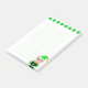 Lucky clovers and a green cute elf with gold goins on white Lined Post-it Notes. Ideal for shopping list, things to do, to do list and so on.