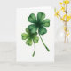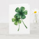 Designed with two watercolor four-leaf clovers on a bright white background, the scene feels airy and close, like a quiet moment shared between friends. The larger clover sits in the upper right, its heart-shaped leaves painted in layered greens that shift from light jade to deeper emerald. Below and to the left, a smaller clover leans in on a curved stem, and their slight overlap suggests a gentle connection 💚. Soft, diffused lighting is suggested through watery paint washes, with darker mossy shadows tucked under the leaf edges for depth. Fine paper texture shows through the paint in places, adding a natural, tactile look without distracting from the leaves. There is no text on the front, leaving the white space open and uncluttered ☘️. The two clovers form a calm diagonal line from lower left to upper right, with the richest green concentrated near the centers of the leaves.