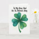 This card features a four-leaf clover painted in watercolor at the center of a bright white background, with soft brush marks that make the leaves feel freshly touched. The greens shift from deep emerald to lighter moss tones, giving the clover a gentle, living depth, with a faint pale-green halo around it. Above the clover, the text reads “To My Dear Dad On St. Patrick’s Day,” set in black lettering that stands out clearly against the open space. The message sits neatly at the top, leaving plenty of breathing room so the clover feels like the main gift on the page. The simple layout and tender wording suggest a close bond, like a quiet hug shared between family on a special day 💚. A tiny hint of celebration comes through in the lucky clover symbol and the fresh green wash, like a calm nod to the holiday ☘️. The clover’s four rounded leaves show layered green paint with visible strokes and a light green glow fading into the white around it.