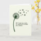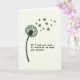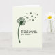 This card shows a deep green dandelion on the left, set against a creamy, parchment-like background with lots of open space. Its stem curves upward into a detailed seed head, and the tiny lines in the circle make it look delicate and alive. As the seeds lift off, they turn into small three-leaf clovers drifting up and to the right, like little lucky notes floating between two people ☘️. The simple two-color look keeps the scene calm, and the gentle motion of the clovers suggests a quiet closeness, as if someone is reaching for another from across the page 💚. Near the bottom, the message “If I had one wish, it would be to meet you sooner.” sits in a typewriter-style font. The text is in green and centered low on the card, leaving the airy space above to frame the dandelion and the trail of clovers. The clovers thin out as they rise, forming a soft diagonal path toward the upper right corner.