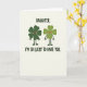 This card shows two smiling four-leaf clovers standing close together on a creamy off-white background, their tiny dot eyes, curved smiles, and soft rosy cheeks giving them a sweet, affectionate look 💚. The clover on the left is a deeper emerald green, while the one on the right is a lighter, brighter green, and the contrast makes them feel like a warm pair with an easy bond. Their slender little legs and simple shapes keep the scene uncluttered, drawing attention to how comfortably they face forward side by side. At the top, “DAUGHTER.” appears centered in dark green, set in a simple sans-serif style that reads clearly. Near the bottom, “I’M SO LUCKY TO HAVE YOU.” is centered in matching dark green, balancing the layout and tying the message to the lucky clover theme ☘️. The blush on their cheeks and the gentle curve of their smiles suggest a caring relationship, like a quiet moment of closeness captured as a picture. Both lines of text sit neatly above and below the pair, framing the two green clovers against the smooth, pale background.