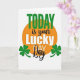 This design shows a bright orange circle centered on a white background, holding the upbeat message “TODAY is your LUCKY DAY” with a lucky-day wink between friends 💚. “TODAY” sits at the top of the circle in emerald green, set in a simple sans‑serif style that feels steady and confident. Just below it, “is your” appears in black, flowing lettering that softens the layout like a gentle aside. “LUCKY” lands in the middle in crisp white uppercase, standing out sharply against the orange like a spotlight moment. The word “DAY” follows in the same black flowing lettering, balancing the line and keeping the rhythm easy on the eyes. Two matching green shamrocks nestle near the lower left and lower right edges of the circle, framing the message like a shared secret ☘️. The greens, orange, black, and white stay neatly separated, and the shamrocks mirror each other at the bottom corners of the orange circle.