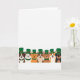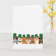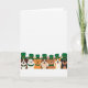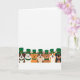 The front design shows seven friendly dogs lined up like a little parade along the bottom of the card, all facing forward with open-mouthed smiles that make them look like they’re in on the same joke. Each pup wears an emerald-green leprechaun hat with a gold buckle and a tiny four-leaf clover, adding a lucky St. Patrick’s Day touch ☘️. Their fur patterns vary—speckled brown and white, warm ginger, black and tan, and several soft beige-and-white coats—so the group feels like a close circle of different personalities. A few of them wear small green or brown bow ties, and the way they lean shoulder-to-shoulder suggests easy friendship and a bit of affectionate togetherness 💚. The background above them is bright white and mostly open, giving the dogs room to stand out like a neat border along the bottom edge. St. Patrick’s Day text sits up in that open space in green lettering, centered and easy to spot against the white. The hats’ green, the clover accents, and the golden buckles repeat across the row, with the dogs filling the lower third of the layout.