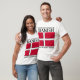 The shirt is good quality and fits just fine, but the colors of the printing are not as bright as in the sample photo. Not the best. The colors are a lot brighter in the sample photo; when I received the shirt they appeared faded. The red looks a little more pink and the blue is a lot lighter. N.B. I did not wash the shirt yet.