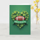 This card features an American football centered on a deep emerald background, with textured brown leather and crisp white laces that catch the light. Around it, lush green shamrocks curl inward to form a heart, as if two friends or sweethearts gently shaped it together 💚. The clover leaves shift from bright lime to darker forest green, and their raised look creates soft shadows that add depth. Beneath the heart, an emerald ribbon sweeps across the lower portion like a loose embrace, tying the sporty theme to the holiday ☘️. The message “Happy St. Patrick’s day” sits on the ribbon in white lettering, centered and easy to read against the green. The lighting stays even and smooth, giving the football and shamrocks a sculpted, almost touchable presence. The heart of shamrocks frames the football tightly, and the ribbon curves in a shallow wave under the text.