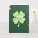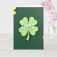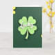 This greeting card centers on a lime-green four-leaf clover set against a deep forest-green background, with plenty of open space that makes the shape feel like it’s meant just for the two of you 💚. Across the clover, the word “Lucky” sits prominently in white, written in flowing cursive-style lettering that looks slightly raised and casts a tiny shadow. The soft curves of the clover and the gentle lift of the lettering create a quiet, affectionate closeness, like a small secret shared between friends. Around the edges, cropped flashes of bright yellow peek in, suggesting scattered blooms or confetti-like accents that frame the center without stealing attention ☘️. Even lighting keeps the scene calm and cozy, revealing a matte look in the dark background and a smoother finish on the clover and text. The strong contrast of light green and white against the dark green makes the central message easy to spot at a glance. Along the outer border, those yellow shapes appear partially cut off, as if they continue beyond the card’s edges.