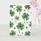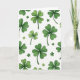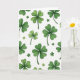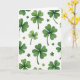 This design shows a repeating pattern of four-leaf clovers scattered across a bright white background, with a few smaller three-leaf clovers tucked in between for variety. The greens range from light lime and spring tones to deeper emerald, with soft shading on each heart-shaped leaflet that makes them look gently rounded. The mix of sizes and angles creates an easy, flowing rhythm, like clovers drifting across a page after a light breeze. There are no characters, but the way some clovers lean toward each other feels like close friends sharing a quiet moment 💚. A few pairs sit side by side, their overlapping leaves resembling a small, affectionate nudge. There’s no headline or message text on the front, so the white space stays open and airy, letting the pattern do all the talking ☘️. Larger clovers appear every few inches, with smaller ones filling the gaps, all painted in layered greens against the white ground.