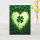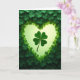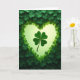 This card design shows a heart-shaped opening formed by layers of three-leaf clovers in deep emerald and forest green, wrapping the edges like a soft leafy frame. Tiny golden dots sit near the centers of many clovers, adding little sparks that make the border feel alive. Inside the heart, the background shifts to a gentle lime-green glow that looks like light is shining through fresh spring leaves. A single four-leaf clover stands in the middle, its leaves evenly spread and slightly curved upward, as if leaning in for a quiet, affectionate moment. The overall look feels like a close, caring embrace between the heart shape and the lucky clover, with 💚 and ☘️ reinforcing the St. Patrick’s Day theme. The greeting appears near the top of the heart in small white letters, and a short sign-off sits near the bottom in pale gold. The greens fade from bright at the center to darker around the outer clovers, with a soft halo of light outlining the four-leaf clover.