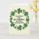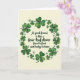 Designed with a circular wreath of green clovers, this St. Patrick’s Day card frames the scene like a lucky little window. Three-leaf and four-leaf clovers overlap in emerald and lime tones, giving the leaves a soft, shaded look, as if they were gathered together for a close friend 💚. Tiny white, asterisk-shaped flowers are tucked between the clovers, adding gentle contrast and a light, affectionate touch. In the center, on a creamy parchment-like background, the quote “A good friend is like a four-leaf clover. Hard to find and lucky to have.” is placed as the main focus. The lettering is black and flowing, standing out clearly against the pale center while staying relaxed and easy to read. The open space around the words feels airy, letting the greens curve inward like an embrace ☘️. Around the ring, the clovers show slight texture and shading, with small white blooms dotted evenly through the wreath.