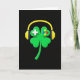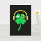 This greeting card features a deep, inky black background with a four-leaf clover centered in rich green tones, its surface lightly textured so it feels almost touchable. Resting over the top leaves is a pair of glowing yellow headphones with a metallic shine and soft gray padding, like they’ve been set there by someone who wants to share the game and the moment 💚. On the left leaf, a crisp white D-pad sits neatly, while the right leaf carries four action buttons—two yellow, one blue, and one red—arranged like a familiar controller face. Near the top, “Happy St. Patrick’s Day” appears in bright green lettering, and a smaller line in white sits below it, aligned to the center for a balanced look ☘️. The lighting traces the clover’s edges with a gentle highlight, giving it depth against the dark field, as if it’s leaning closer to you. The mix of lucky symbol and gaming gear suggests two friends or partners sharing a late-night win, shoulder to shoulder, without needing to say much. The final look is a centered green clover with yellow headphones, a white D-pad on the left, and four colored buttons on the right, all floating sharply on black.